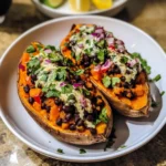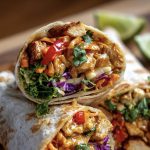 • A wholesome and flavorful wrap featuring roasted sweet potatoes and black beans, complemented by a zesty garlic aioli