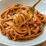 • Tuscan Sundried Tomato Shrimp Fettuccine, a luxurious pasta dish featuring succulent shrimp in a creamy sundried tomato sauce