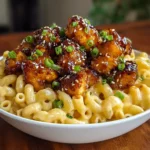 • Spicy-sweet hot honey chicken served with creamy mac and cheese and a medley of fresh seasonal veggies