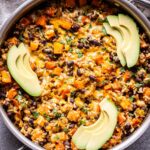 • Savor the zest of our Turkey Taco Quinoa Skillet, featuring seasoned turkey, vibrant corn, black beans, and melty cheese
