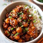 • Savory sesame chickpeas paired with fluffy rice, complemented by a refreshing cucumber and shredded carrot salad