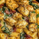 • Creamy tortellini pasta tossed in a flavorful sauce with tender chicken, spinach, and sun-dried tomatoes