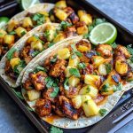 • Chicken tossed in teriyaki sauce, flour tortillas with a side of pineapple and shredded cabbage + carrot slaw and creamy garlic cilantro aioli