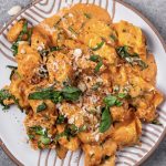 • Rich sundried tomato cream sauce with sautéed spinach over a bed of tender rigatoni